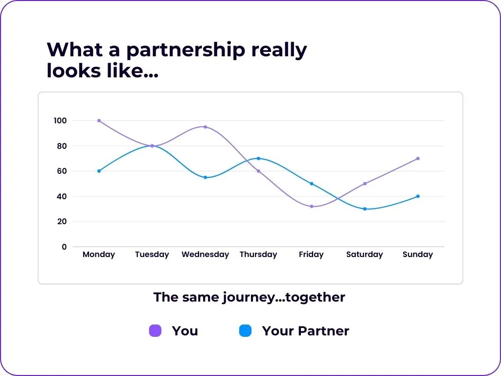 It's important to realize a person with dementia is doing the best they can every single day. This best may look like 75% one day and 45% the next day. Same will hold true for you. One day your best may look like 85% and the next its 60%. That's life — full of ebbs and flows. So, how can everyone's contribution of best effort be used to improve the journey of life together? When you stepped into the role of caregiver, did you not join your partner on their journey? Did they not simultaneously become a part of yours? So, embrace the beauty that lies in viewing your life with the person you are caring for as a partnership. You are both in this together!