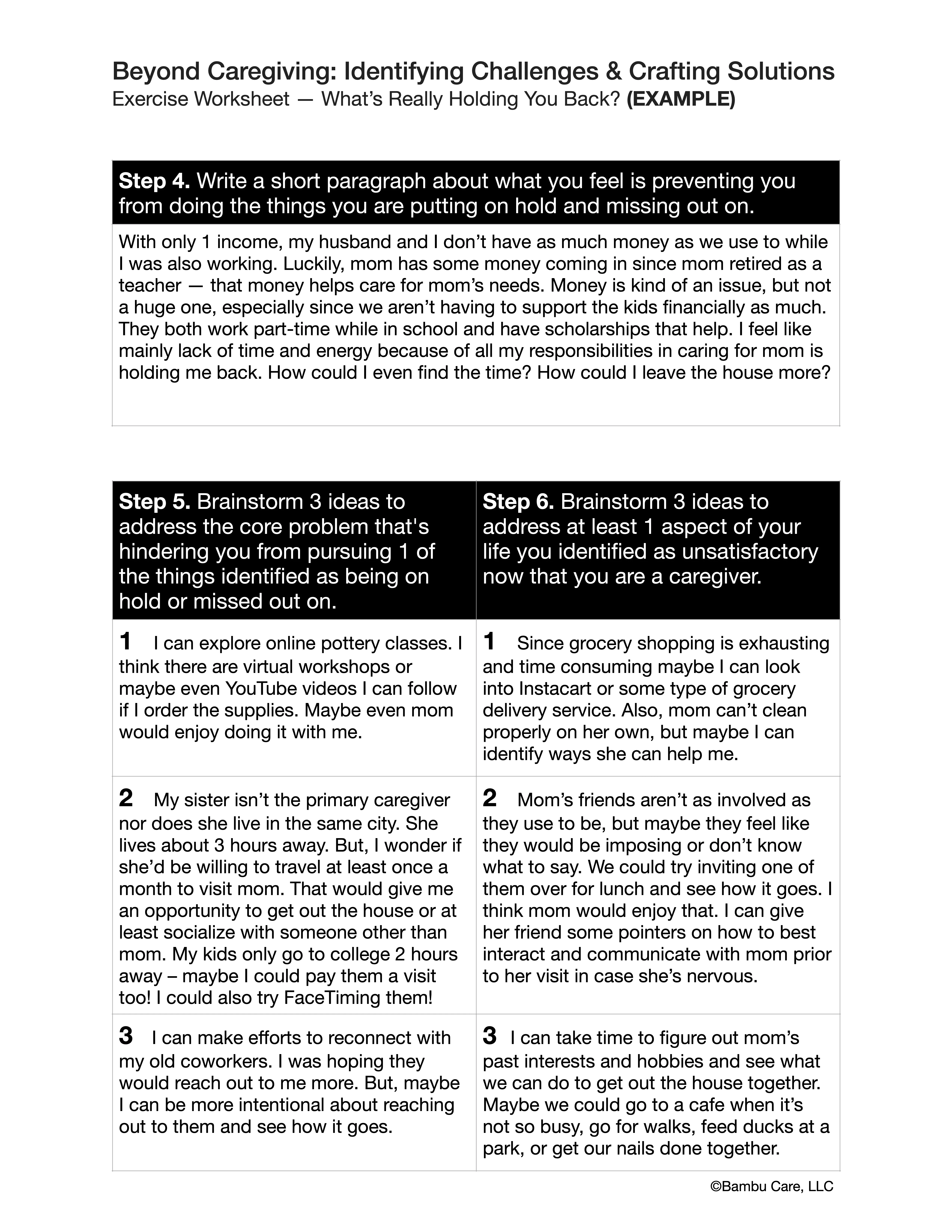 Step 6. Brainstorm 3 ideas to address at least 1 aspect of your life you identified as unsatisfactory now that you are a caregiver.